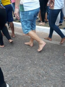 Muitos fiéis acompanharam a procissão deste domingo com o intuito de pagar promessas ou simplesmente agradecer a uma graça alcançada. Uma das que pagaram promessa foi Meire, que de joelhos, saiu pela avenida Antônio Maia na Marabá Pioneira.
