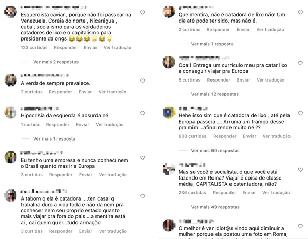 A catadora de recicláveis do Distrito Federal Aline Sousa, de 33 anos, responsável por colocar a faixa presidencial no presidente Luiz Inácio Lula da Silva (PT) durante a posse, sofreu ataques preconceituosos no Instagram ao longo desta semana. Em mensagens agressivas, usuários da rede social questionaram o motivo de Aline ter viajado à Europa em abril.