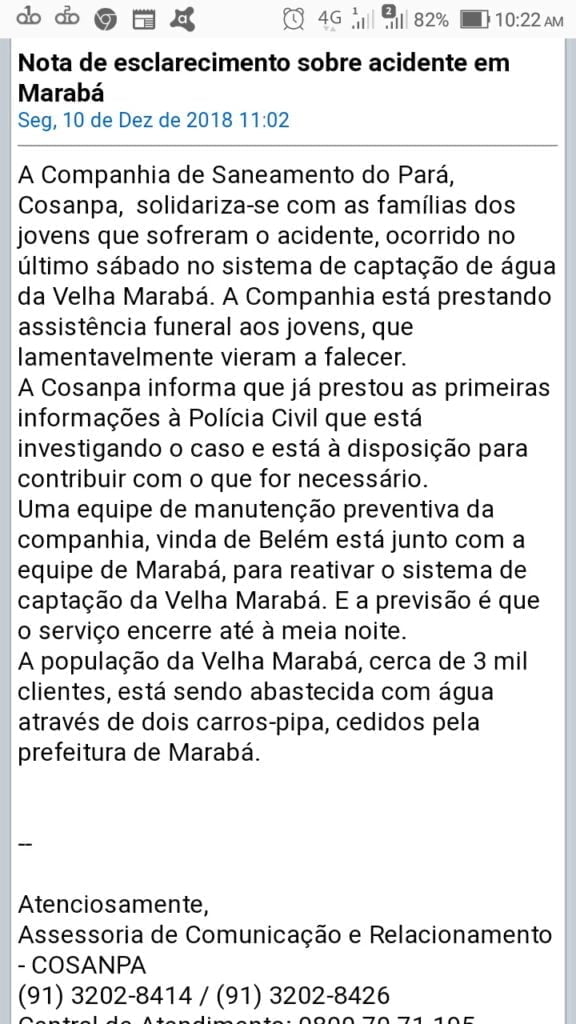 ABASTECIMENTO DE ÁGUA NA MARABÁ PIONEIRA SERÁ NORMALIZADO A MEIA NOITE DESTA SEGUNDA FEIRA