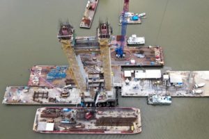 Com toda a estrutura do tabuleiro (pista por onde passarão os veículos) e cabos estais do novo vão central da ponte já no canteiro de obras, às margens do Rio Moju, a Secretaria de Estado de Transportes (Setran) entra na reta final para religação da Alça Viária. Até o próximo dia 15 de dezembro a obra estará concluída.