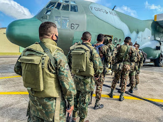 - Militares da Marinha, do Exército, da Aeronáutica e de órgãos federais e estaduais e agências de segurança pública e ambientais estão mobilizados para diversas ações preventivas e repressivas contra delitos transfronteiriços e ambientais, de descontaminação (defesa nuclear, biológica, química e radiológica) e de assistência hospitalar, nos estados do Pará e Amapá. Na Operação Ágata Norte 2020 estão sendo empregados meios do Comando do 4º Distrito Naval da Marinha, do Comando Militar do Norte e da Ala 9, que atuam com as unidades operativas do Comando de Operações Aeroespacial, do Comando em Chefe da Esquadra, da Força de Fuzileiros da Esquadra, da 22ª Brigada de Infantaria de Selva e dos Comandos dos 3º e 9º Distritos Navais. São 3.605 militares das Forças Armadas envolvidos, além de mais de 70 meios navais, cem meios terrestres e oito aéreos, em uma área equivalente a 16,3% do território nacional, a 14,2% marítima, 1.160 quilômetros de litoral (15,7% do total) e 1.323 km de fronteira terrestre (8,4% do total).