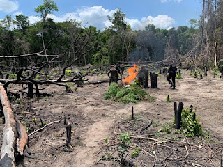 O Navio de Apoio Oceânico “Iguatemi” serviu de apoio logístico como Núcleo de Coordenação para que as equipes das interagências e Forças Armadas planejassem suas ações. Ainda foram utilizadas aeronaves do 1° Esquadrão de Helicópteros de Emprego Geral do Norte e da Esquadra para sobrevoar a região e transportar os agentes da PF. Em continuidade às ações, ontem, após levantamentos de inteligência, dois plantios de maconha em área ribeirinha da zona rural do município de Ipixuna do Pará foram localizados, erradicados e incinerados três mil pés da planta, que equivalem a uma tonelada da droga. Os cultivadores fugiram do local com a chegada das equipes (PF e Marinha).