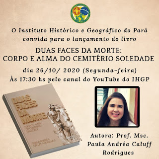 - O Instituto Histórico e Geográfico do Pará agora tem um canal no YouTube, criado pela professora doutora Goretti Tavares, sob a supervisão e anuência da presidente do IHGP-PA, professora Anaíza Vergolino, historiadora e mestra em Antropologia, com a colaboração dos pesquisadores membros do silogeu Róbson Lopes, 1º secretário, e Helena Dóris. O canal será inaugurado nesta segunda-feira, 26, às 17h30, com o lançamento da mais recente obra da sócia Paula Andréa Calluf Rodrigues, intitulada “Duas faces da morte: corpo e alma do Cemitério Soledade”. A live será mediada pela Profa. Goretti Tavares e terá participação do Prof. Róbson Lopes e convidados.Inscrevam-se no canal e ativem o lembrete do evento aqui. Tenho a honra de integrar o IHGP-PA e já estou inscrita.Postado há Yesterday por Franssinete Florenzano3