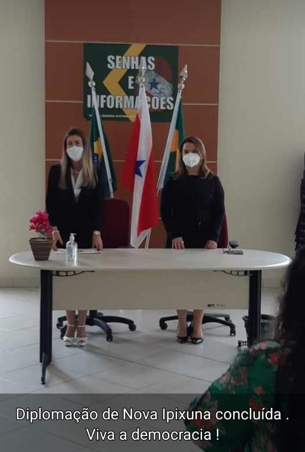 Drª Graça prefeita reeleita e vereadores de Nova Ipixuna foram diplomados hoje quarta feira 16, as 10h, no Cartório Eleitoral, solenidade simples e rápida, devido à Covid. A Solenidade foi comandada pela juiza Adriana Tristão da 23º zona eleitoral de Marabá.