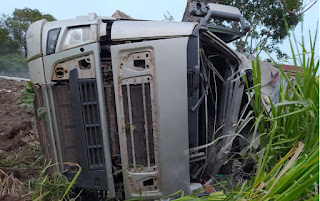 O acidente aconteceu no km 163 da rodovia, por volta das 4h30. Por conta da força da batida, o caminhão tombou e saiu da pista. A PRF informou ainda que os veículos colidiram de forma lateral.