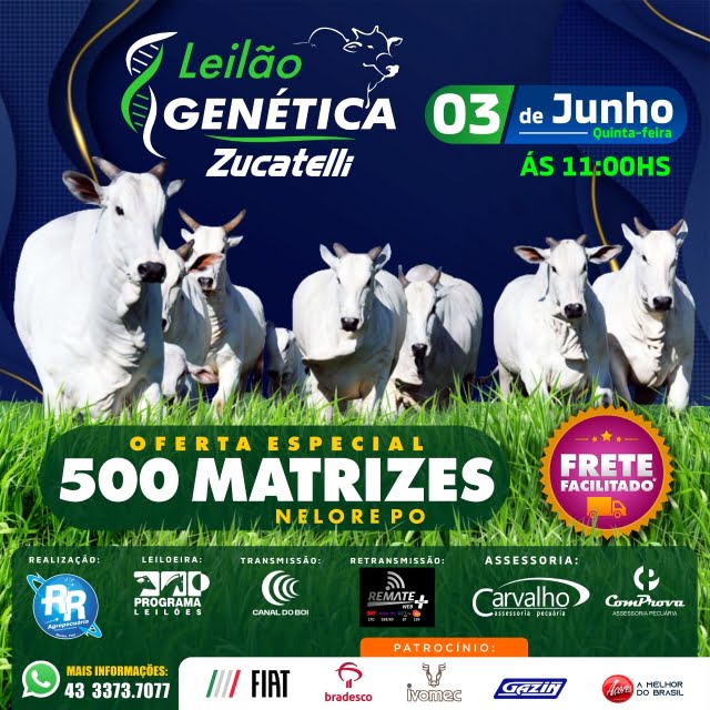 RR Agropecuária Leilão Virtual Genética Zucatelli neste 03 de junho 2021