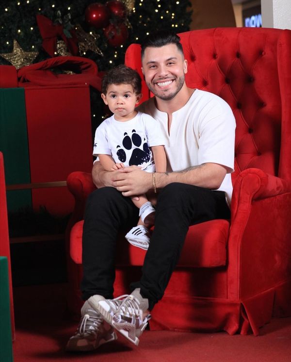 Em clima natalino, o cantor levou o herdeiro para conhecer o Papai Noel e fez questão de compartilhar no Instagram.