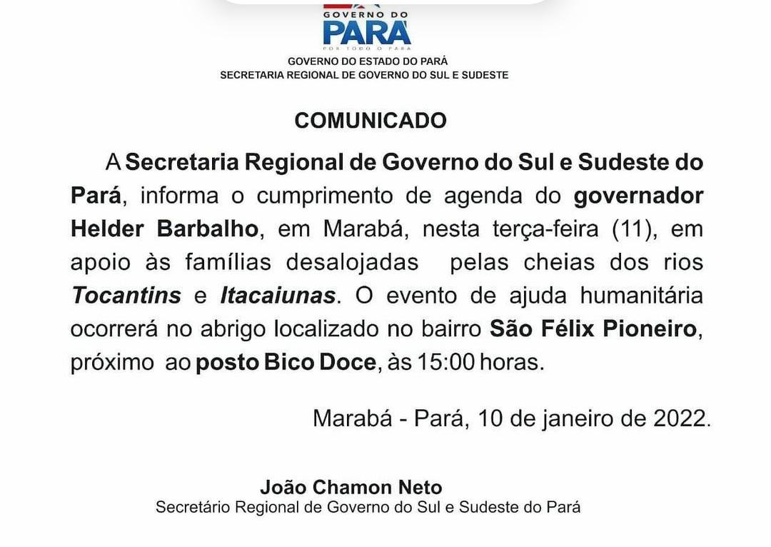 Marabá:Governador Cumpre agenda nesta terça feira dia 11 para dar mais apoio as famílias desalojadas pelas cheias dos rios da cidade