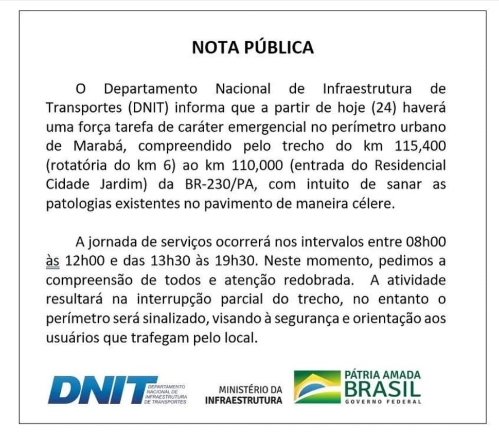 Departamento Nacional de Infraestrutura de Transportes, o DNit, iniciou obras de manutenção dos buracos na Transamazônica, no trecho entre 5 quilômetros.