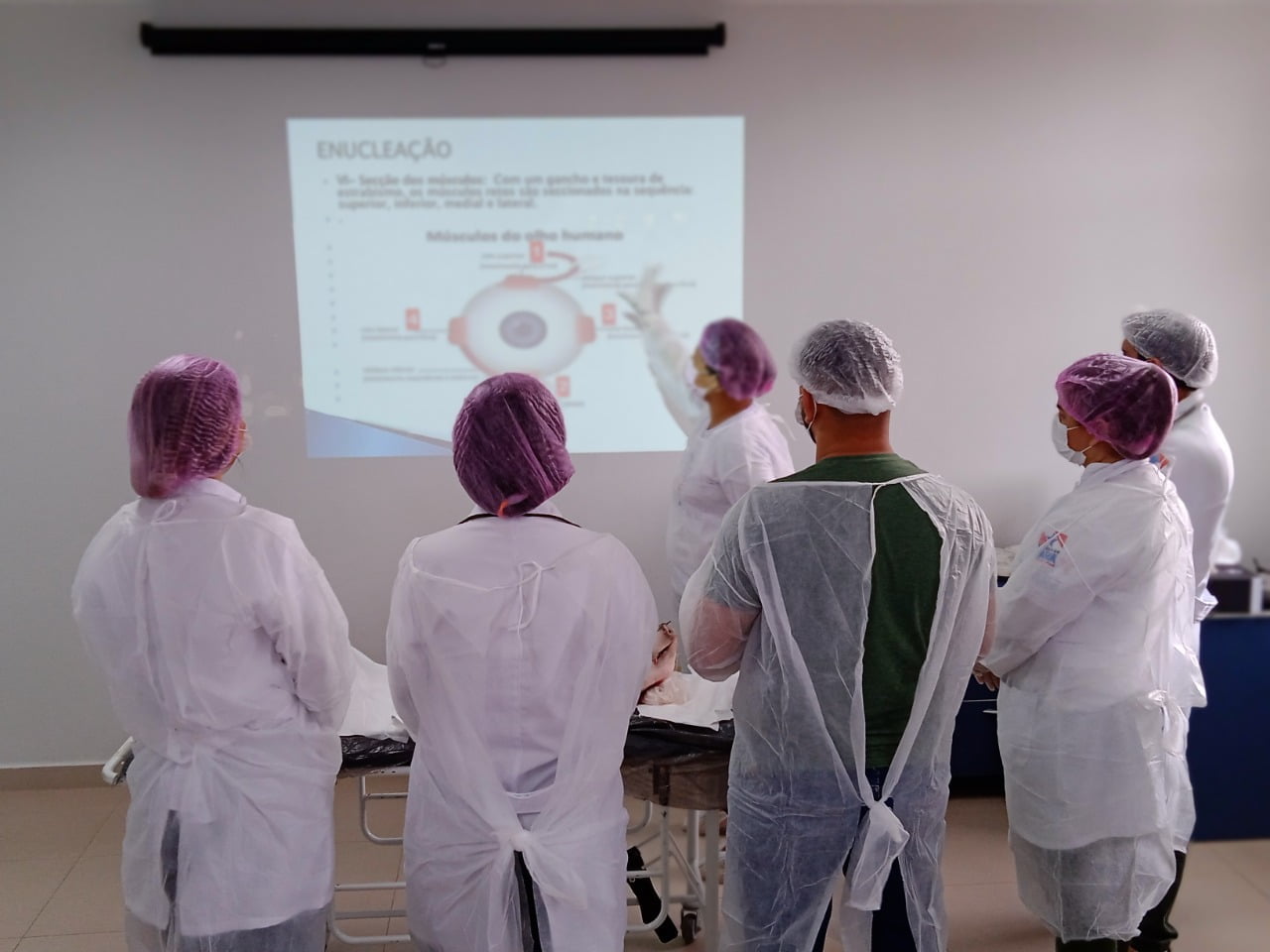 “Aprendemos na prática a técnica da enucleação, que é a retirada da córnea em perfeito estado para doação. Simulamos o procedimento cirúrgico em uma cabeça de porco e conhecemos as etapas necessárias para que o processo seja realizado com êxito até o doador”, explicou.