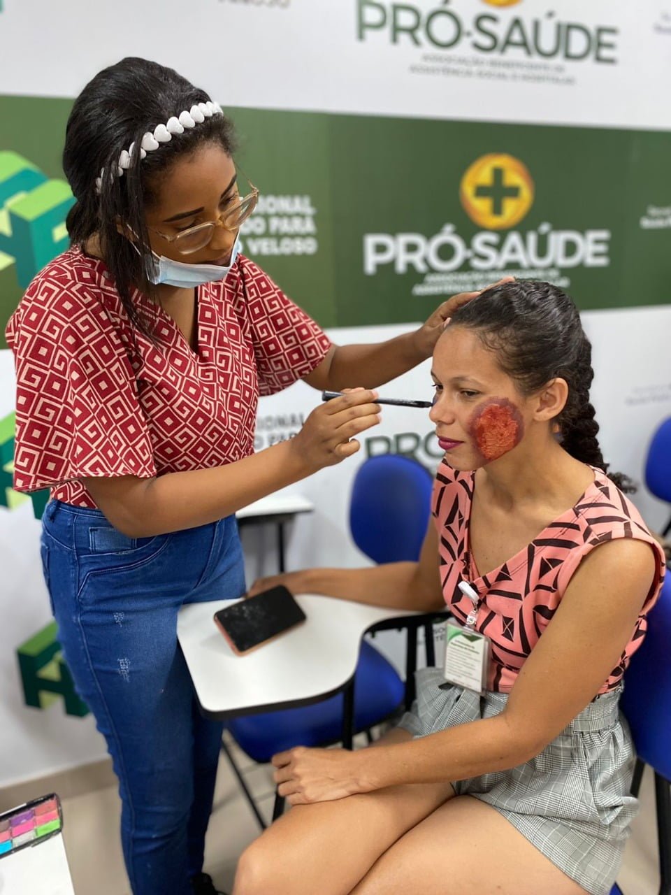 “Cada maquiagem e preparação da lesão, levou em média, mais de uma hora, e contamos com a orientação dos profissionais da assistência para ficar o mais realista possível o ferimento”, explicou Wesleana Coelho, colaboradora do HRSP.