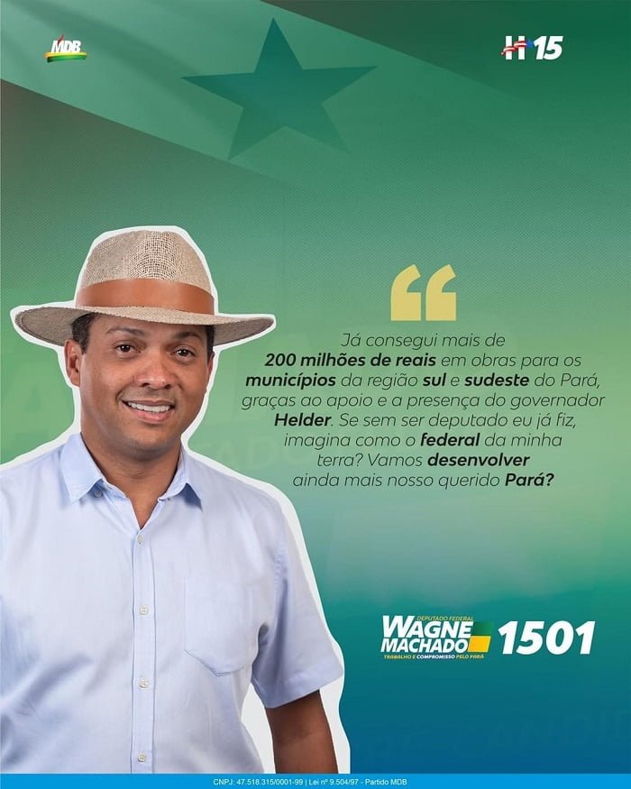 PROPAGANDA ELEITORAL DO CANDIDATO A DEPUTADO FEDERAL WAGNE MACHADO, DE CNPJ: 47.518.315/0001-99 | ELEIÇÕES 2022 | Partido MDB