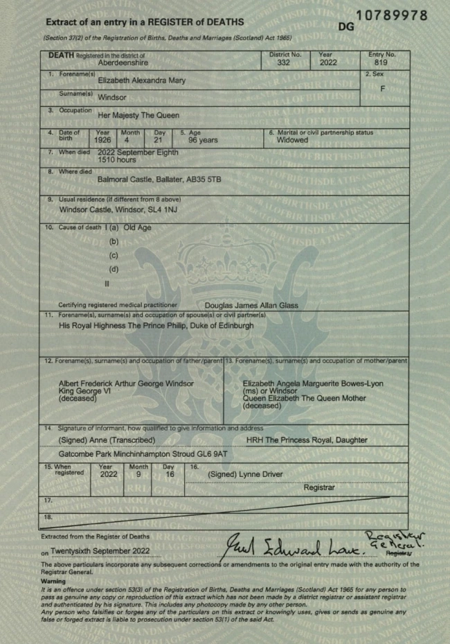 Segundo o atestado de óbito divulgado nesta quinta-feira, 29, a rainha Elizabeth II morreu “de velhice”, aos 96 anos, às 15h10 no horário local (11h10 em Brasília) do dia 8 de setembro. Pelo horário, …