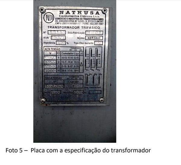 Foto 5 – Placa com a especificação do transformador