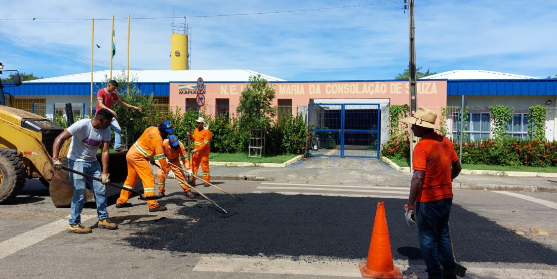 Na Avenida Transmangueira, a equipe de 10 agentes atuou com caçamba, retroescavadeira e rolo compactador. Os pontos mais críticos estavam no perímetro próximo ao Núcleo de Educação Infantil Maria da Consolação de Souza.