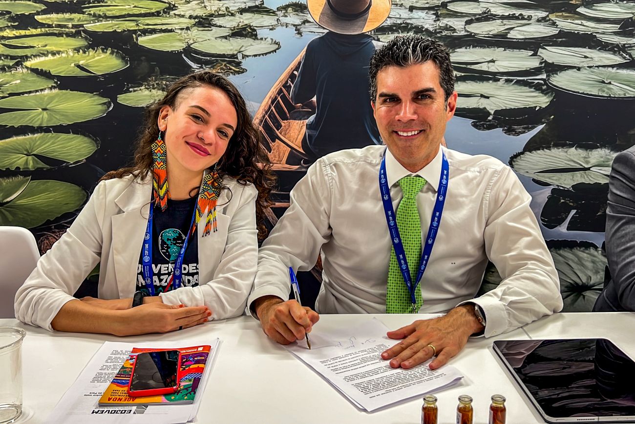 Carla avaliou positivamente o encontro com o governador e conta que o Instituto, que tem sede em Belém, acumula dois anos de desenvolvimento, de pesquisa, de análises de políticas públicas e entendimento do cenário para as juventudes, todos na perspectiva climática. “A ideia de uma pré-COP, no ano que vem, ou de uma COP para a Juventude, é uma das demandas do Cojovem apresentadas em Dubai para o governador”, explicou. “A gente pediu a inclusão de juventudes amazônidas nas políticas socioambientais do Pará de forma transversal e principalmente no Plano Estadual Amazônia Agora (PEAA). A gente colocou a realização de uma COP jovem, de crianças e juventudes, sobretudo para que possamos ter essa instância deliberativa e encaminhativa. A ideia é materializar políticas públicas sensíveis às juventudes, mas não só. Queremos replicar isso para a Amazônia Legal, para o Brasil. Foi com muito prazer que a gente pôde contar com o governador Helder Barbalho assinando o nosso documento, e estamos muito felizes por isso”, informou a ativista. |