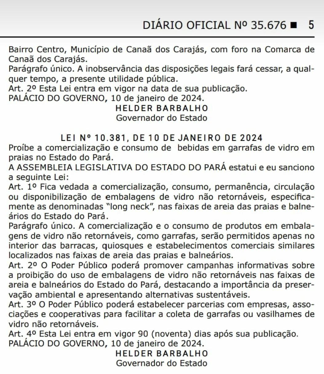 Lei nesse sentido, aprovada pela Alepa (Assembleia Legislativa do Pará), acaba de ser sancionada pelo governador Helder Barbalho e publicada na edição de hoje do diário oficial paraense (DOE).