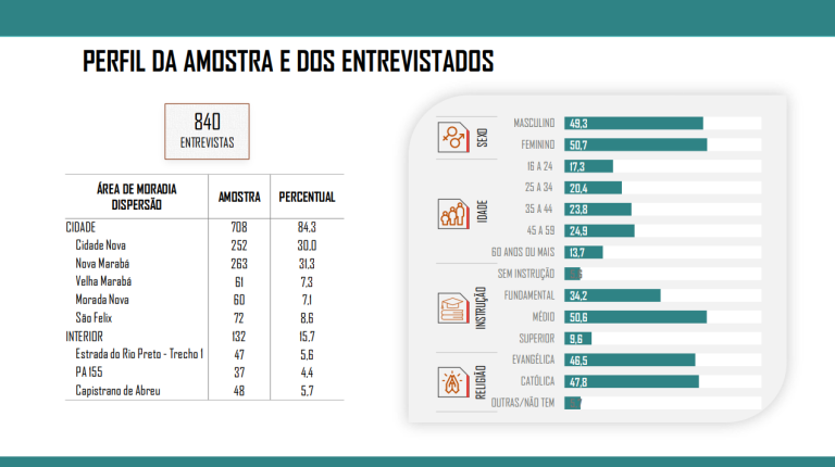 A pesquisa ouviu eleitores das zonas urbana e rural de Marabá, como descrito a seguir: