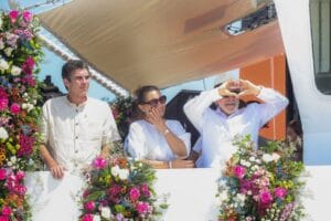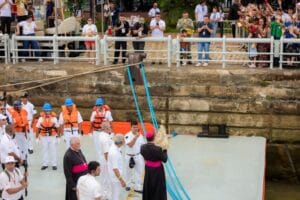 Por volta do meio-dia deste sábado, 12, a Imagem Peregrina de Nossa Senhora de Nazaré desembarcou na Escadinha da Estação das Docas, concluindo assim a romaria fluvial. O governador Helder Barbalho, acompanhado da primeira-dama, Daniela Barbalho, participou da quarta procissão das festividades do Círio de Nazaré ao lado do presidente Lula e da primeira-dama, Janja, que estão em Belém para acompanhar as programações deste fim de semana.