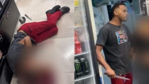No momento da ocorrência, uma policial penal, que estava no estabelecimento, interveio ao presenciar a cena. A agente deu voz de prisão ao homem, que desobedeceu e passou a ameaçá-la com a faca. Diante da situação, a policial efetuou um disparo, atingindo o suspeito de raspão.