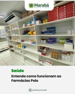 A Farmácia Polo, uma atividade crucial gerenciada pela Secretaria Municipal de Saúde (SMS), possui quatro unidades em Marabá: Nova Marabá, Marabá Pioneira, São Félix e Morada Nova. Através deste serviço, os medicamentos prescritos são entregues nas Unidades Básicas de Saúde (UBS) e no Hospital Municipal (HMM).