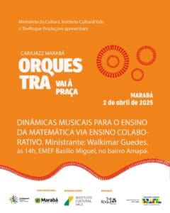 Além de concertos de música instrumental nos municípios de Marabá, Parauapebas e Curionópolis, o projeto “Orquestra vai à Praça”, que está na segunda edição, oferece uma contribuição pedagógica por onde passa, com oficinas dedicadas a alunos dos 4º e 5⁰ ano do ensino fundamental em escolas públicas. O projeto é uma realização da TheRoque Produções e Ministério da Cultura do Governo Federal, com patrocínio do Instituto Cultural Vale, por meio da Lei Federal de Incentivo à Cultura, e conta com apoio institucional das Prefeituras de Marabá, Parauapebas e Curionópolis.