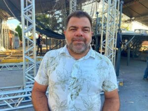“Começamos a montar na segunda, mas não foi só o palco, a gente já adiantou outras coisas. A questão do camarote do lado esquerdo do palco já está montada a cobertura, falta montar só o piso dele. A gente está contando três dias e concluindo todas essas montagens, o palco, essa cobertura e mais algumas outras coisas. A gente está empenhado, trabalhando, pega cedo e para meia-noite, nessa correria para a gente montar no prazo previsto. Eu creio que no sábado a gente já está só com os ajustes finais”, frisa o encarregado.
