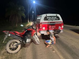 Ao se aproximarem da ladeira localizada logo após o aeroporto de Marabá, os policiais visualizaram uma motocicleta com as características informadas. No momento em que a viatura tentou realizar o retorno para efetuar a abordagem, o condutor abandonou a pista e adentrou um terreno baldio à margem direita da rodovia.