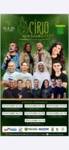 O evento acontece de 19 a 25 de outubro, logo após a grande procissão do Círio de Nazaré, sempre às 21h, no palco montado em frente ao Santuário de Nossa Senhora de Nazaré, reunindo fé, música e cultura em um espetáculo gratuito e aberto ao público.