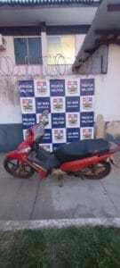 A motocicleta, cor vermelha, de placa QEE-7301, é de propriedade de Bianca Zen Magalhães. Ela havia sido roubada próximo à Arena Bob, no Núcleo Cidade Nova, há quase nove anos – o fato havia sido registrado na delegacia na época.