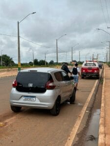 Durante a ação, um veículo Fiat Moby prata (placa QOW-5B20) tentou fugir ao avistar os policiais e foi abordado diretamente na ponte. Os ocupantes – Weverton da Silva Marques (CPF 071.488.832-02) e Yane Matias Monção (CPF 045.782.002-05) – inicialmente alegaram que caixas encontradas no banco traseiro continham mercadoria para roça.